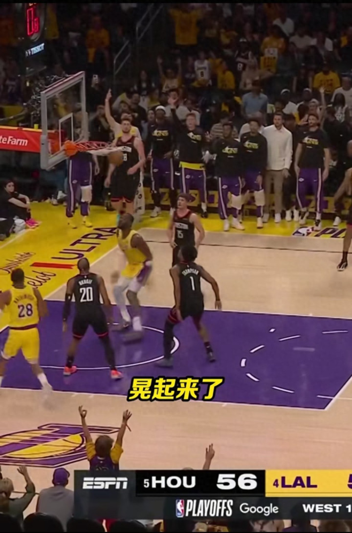 你以为这就完了?第二节、第三节他接着疯。第三节还剩6分多钟,他一个虚晃“晃起来了”,抬手又是一记三分,湖人替补席直接嗨到集体起立。到了第四节,这哥们彻底杀疯了,连续命中三分,单场狂轰5记三分球,拿下27分,把火箭的防守策略打得跟纸糊的一样。